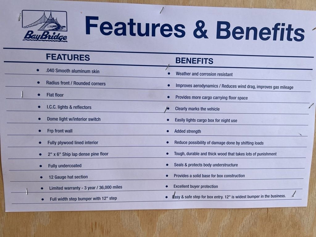 Inside the cargo area, youll find a 2x6 shiplap dense pine floor, insulated ceiling with 3.4mm Luan liner, and 3/8 plywood sidewall liners for durability and temperature control. A FRP solid bulkhead with 30x43 sliding door separates cab and cargo while allowing easy access when needed.